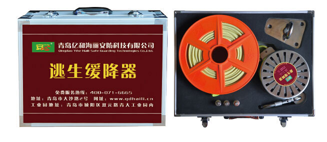 “安心牌”缓降器,考虑到火灾时逃生时间紧,逃生空间小,逃生处环境复杂,可能无帮手等特点,它不借助外力,仅靠人体自重就可工作,完全可以一人快速自救逃生,并可实现匀速下落或者悬停的装置。